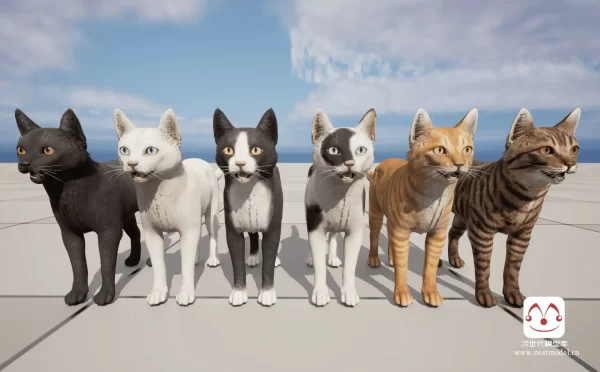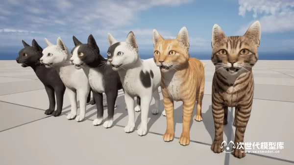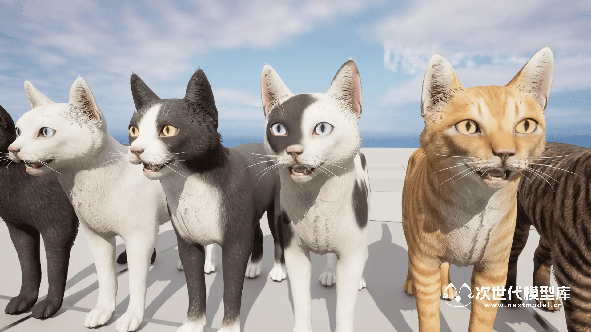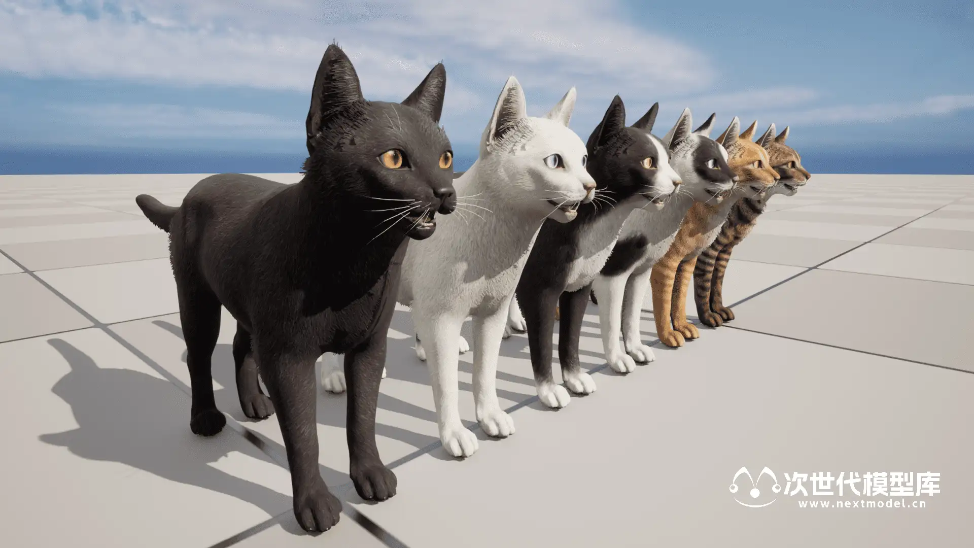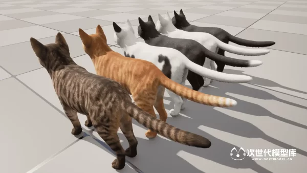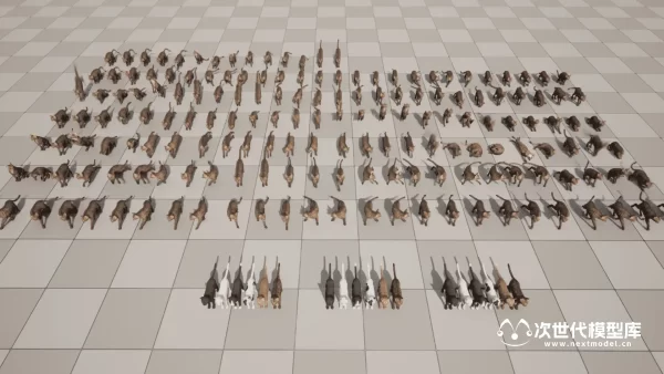 这是一个写实的动物猫模型,拥有170个动画。这些动画包括攻击(咬、前、左、右)、击打(前、后、中)、死亡(左、右)、战斗(开始、循环、结束、攻击1-3、击中1-2、死亡1-2)、空闲1-7、吃、喝、谎言1-2、躺着肚子1-3、睡觉、睡觉肚子、14级跳跃(开始、向前开始、向上飞、水平飞、高飞、向下高向前飞、向下飞低、向下低向前飞、着陆、向前着陆、坠落边缘、钩住和攀爬1-3)、跳跃(前进、奔跑、原地)、蹲伏移动(前、左、右、后、左后、右后)、蹲伏(空闲1-2、左转、右转)、行走(前、左、右、后、左后、右后)、小跑(前、左、右)、跑(前、左、右)、跑得快(前、左、右)、游泳(进入、前、左、右、后、左后、右后)、转圈圈(左、右)、180度转弯(左、右)、坐着(闲置1-3)、舔、排便、抓耳朵、刮擦地毯等。