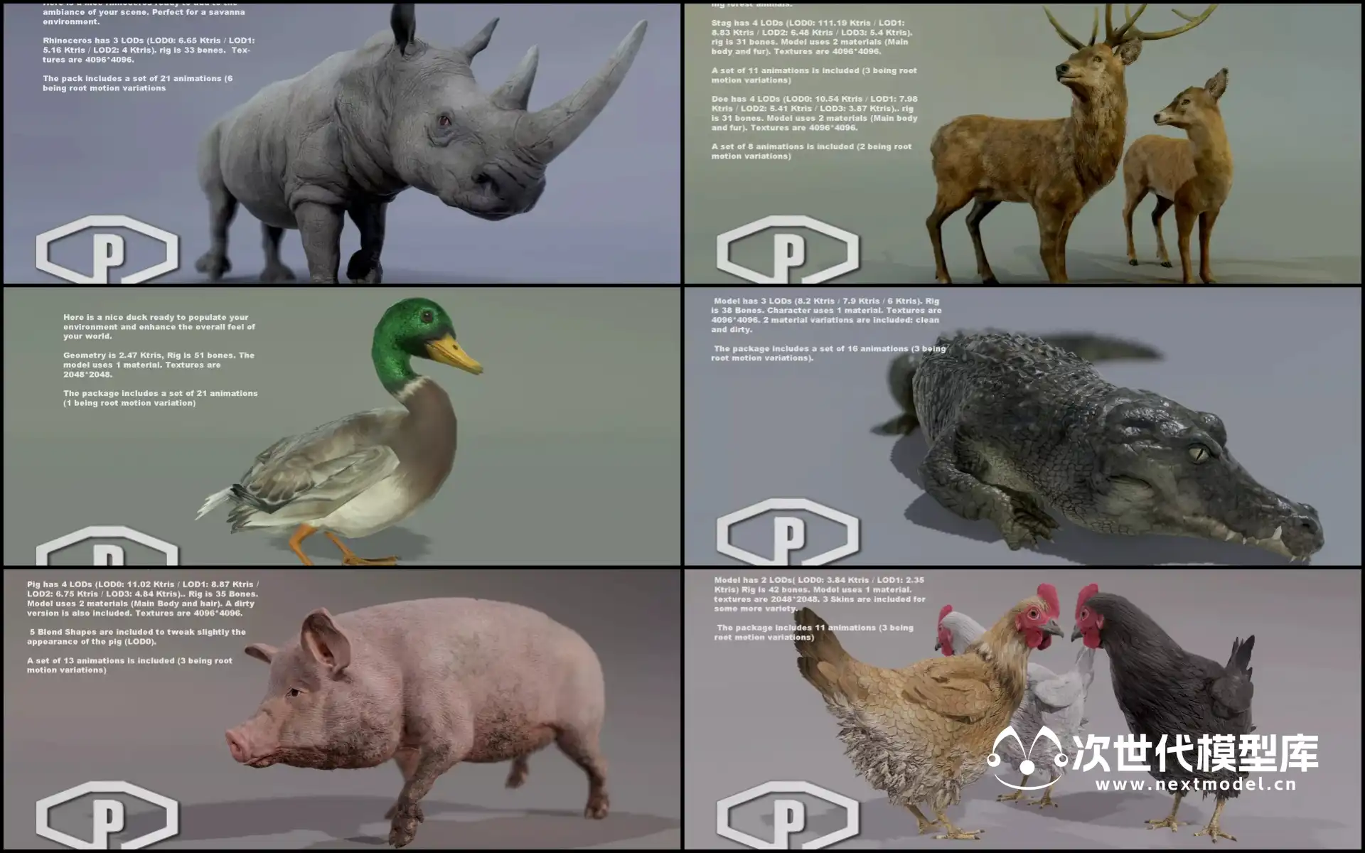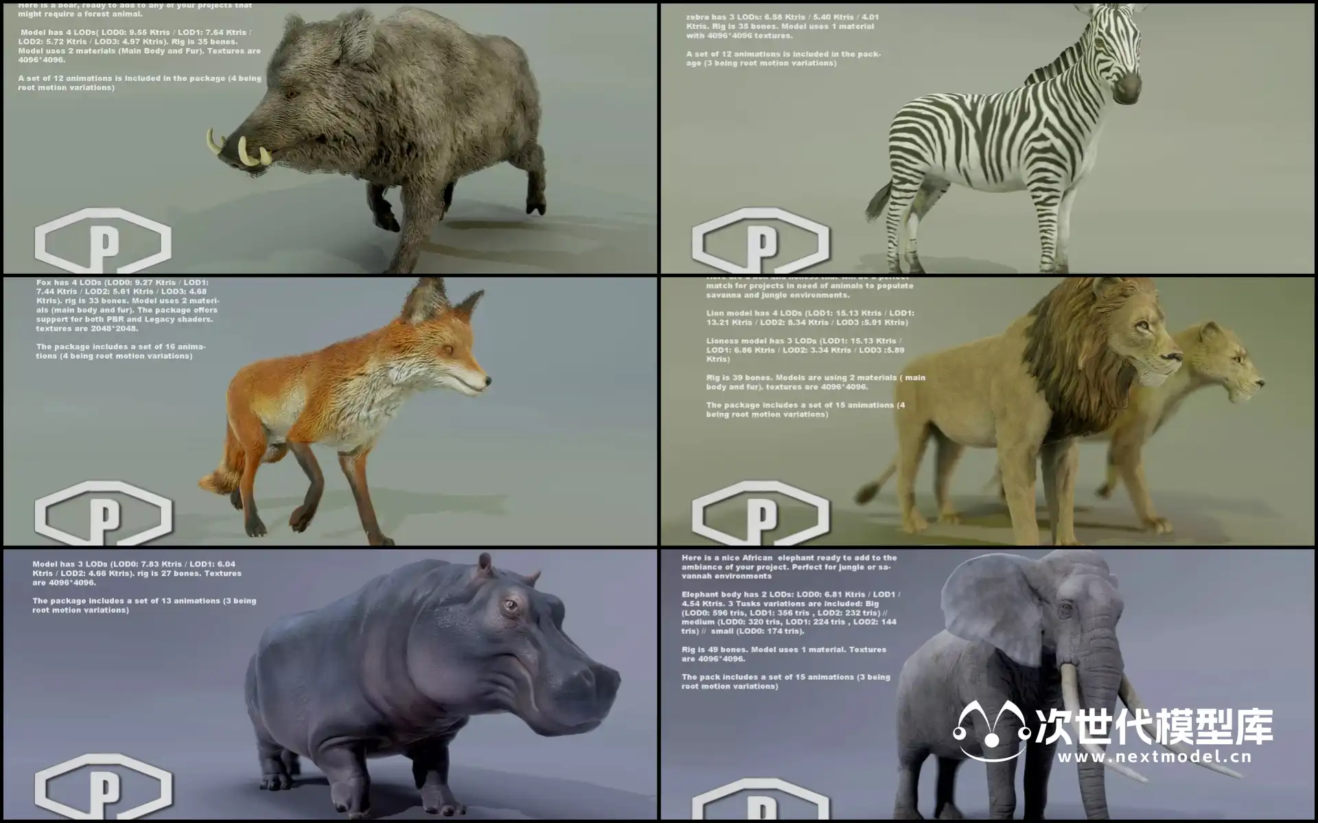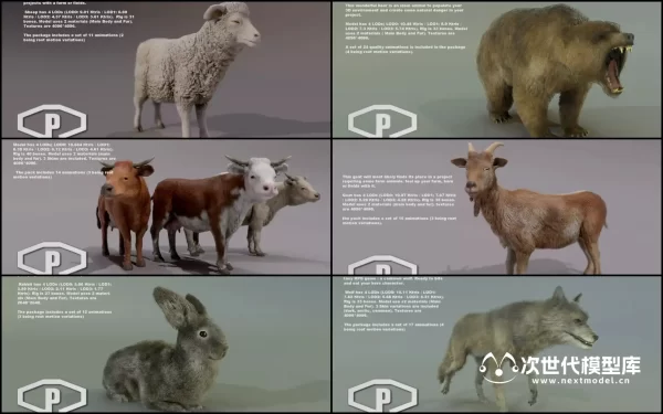 这个合集包不仅提供了丰富多样的动物模型,还支持PBR材质和Legacy着色器和动画。无论您是使用现代的PBR渲染技术还是传统的着色器,都可以轻松地为这些动物角色赋予栩栩如生的外观。这意味着您可以在不同的渲染管线中使用这些模型,并且不会失去任何细节或质量。