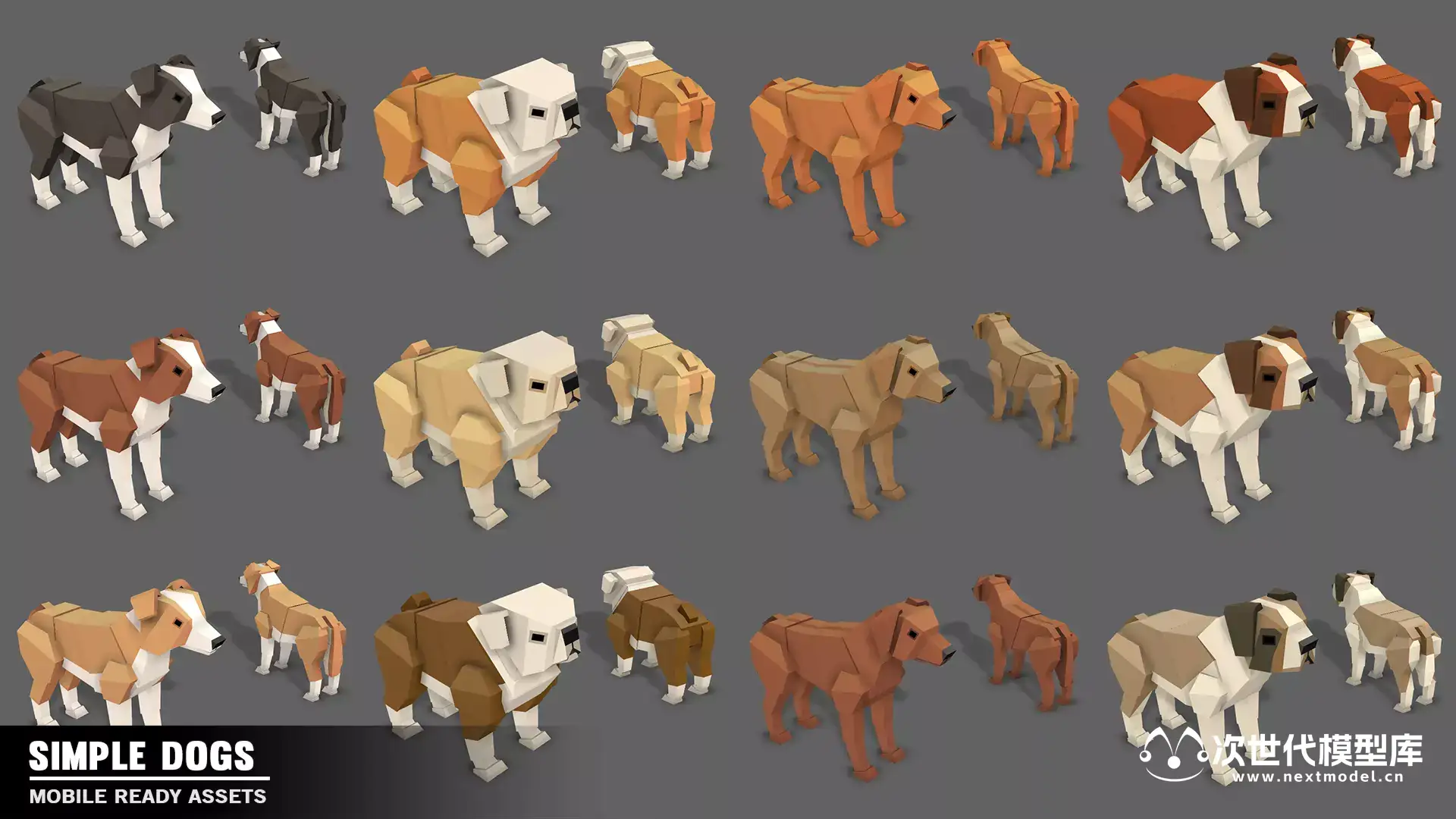 一个简单的狗资源包,包含12种狗的种类,分别是吉娃娃、哈巴狗、比格犬、斗牛犬、贵宾犬、斗牛犬、拉布拉多犬、边境牧羊犬、罗得西亚脊背犬、德国牧羊犬、杜宾犬和圣伯纳犬。并且狗还有基本的动画,可与我们的其他资源一起创建一个简单的卡通风格的游戏。支持通用渲染管道 (URP)。 技术参数 资产体积:2mb 资源格式:Unity资源包 资源版本:Simple Dogs - Cartoon Animals v1.01 支持Unity版本:5.0.0或更高、支持URP