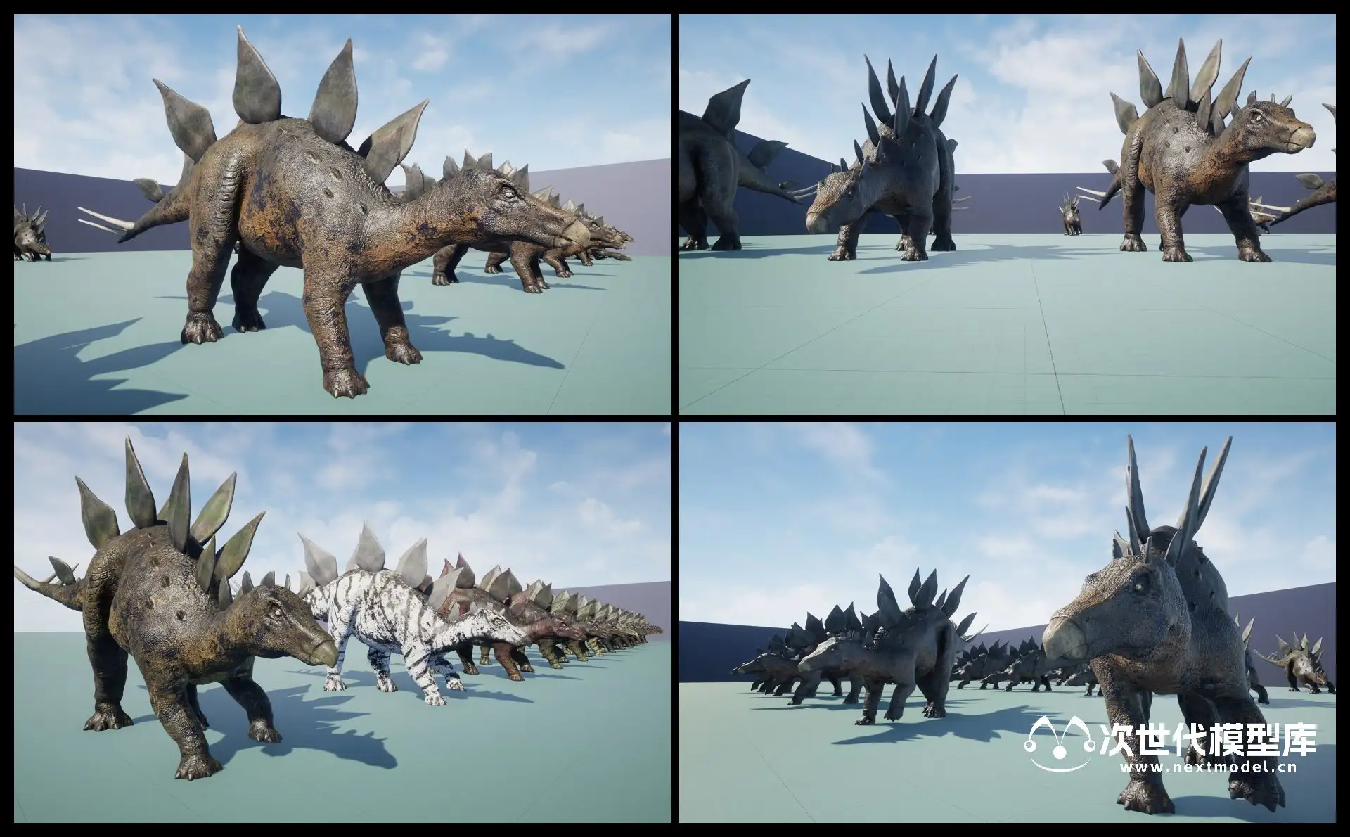 侏罗纪时代的食草恐龙-剑龙(Stegosaurus)3D模型,以其卓越的AAA级游戏品质而闻名。这一模型不仅栩栩如生,还支持PBR纹理,分辨率高达2K~8K,提供多达10种不同效果的皮肤外观,为游戏世界增添了更多的细节和真实感。