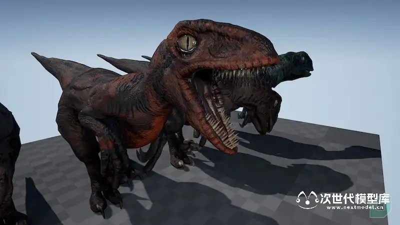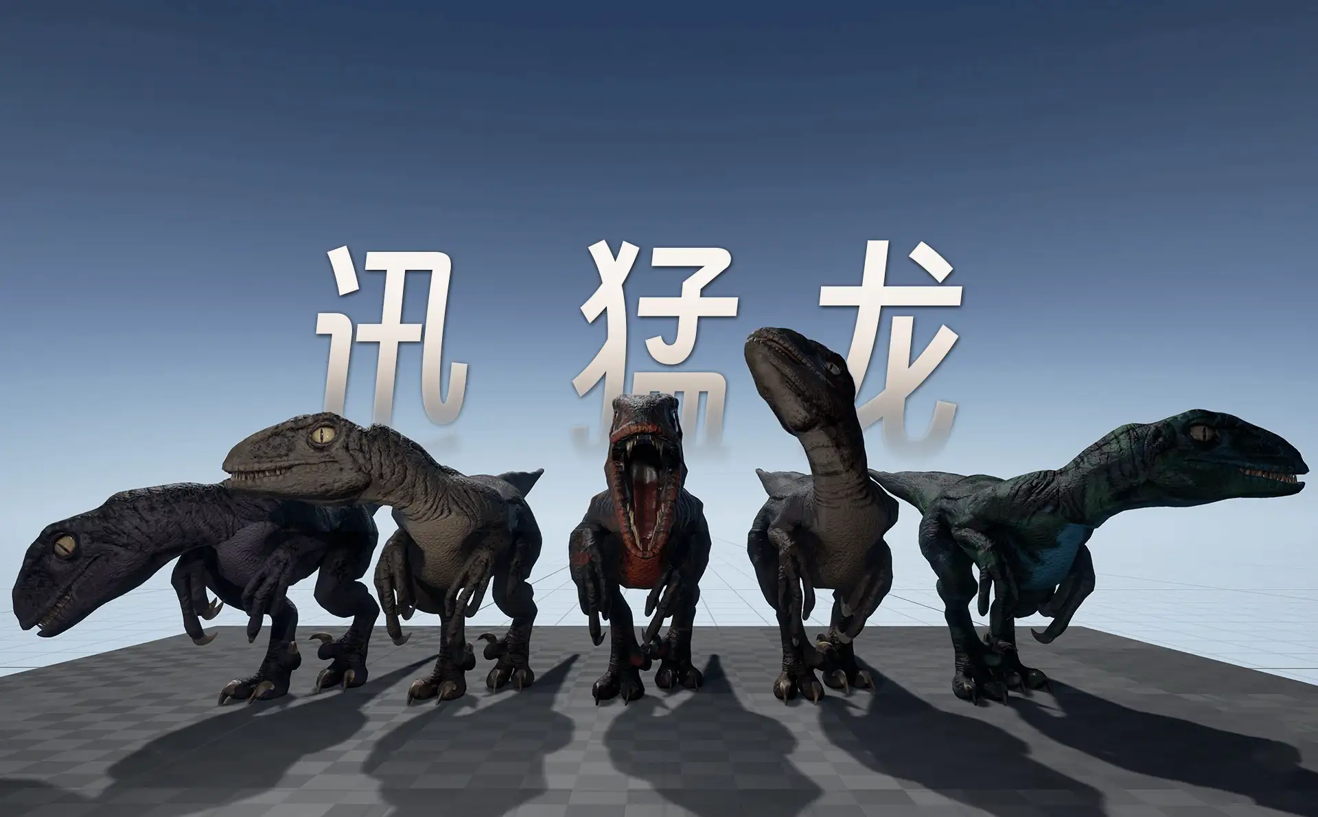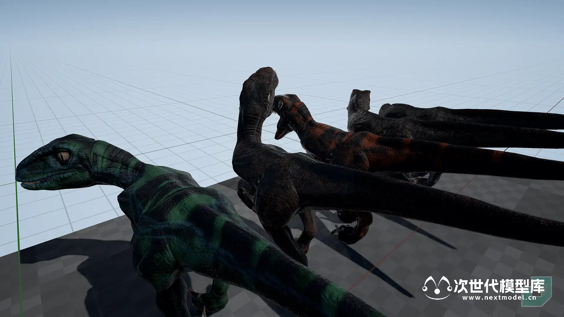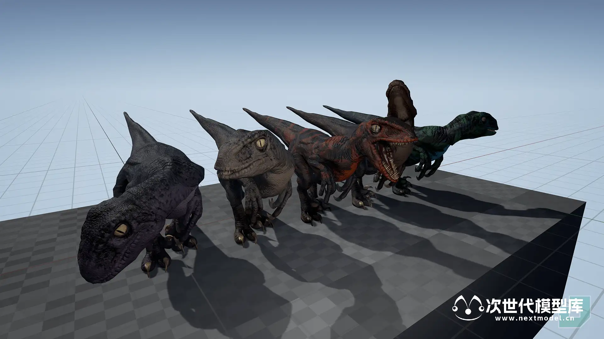 3A级游戏品质的侏罗纪恐龙-迅猛龙(Velociraptor)模型,特点包括超高品质的4K纹理,包括Albedo、Normal、Roughness和AO Maps等,以及令人叹为观止的6种不同类型的皮肤外观,确保您的创作无限可能。