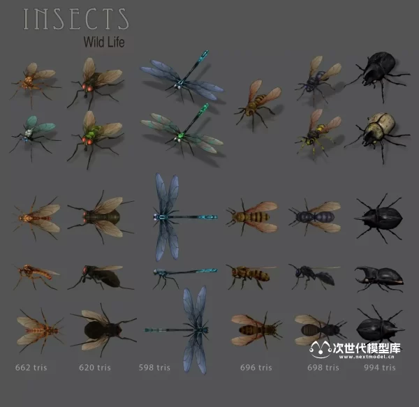 拥有AAA级品质的野生动物昆虫系列模型合集包,每个模型都有游戏做了优化,每个都使用手工制作了LOD,具备出色的游戏性能,能够用于VR、主机、PC,甚至手机游戏。同时支持URP和HDRP。模型包括:蜜蜂、蜻蜓、飞蛾、苍蝇、蚊子、甲壳虫、黄蜂、屎壳郎等;
