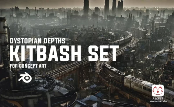 模块化粗矿混凝土科幻都市3D模型合集—Blender/FBX格式