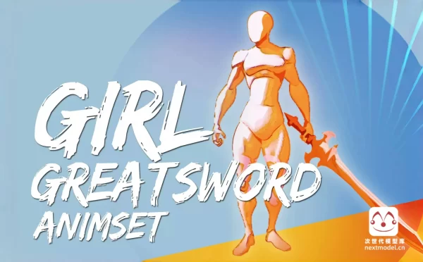 动漫风格女孩使用大剑战斗动作动画集