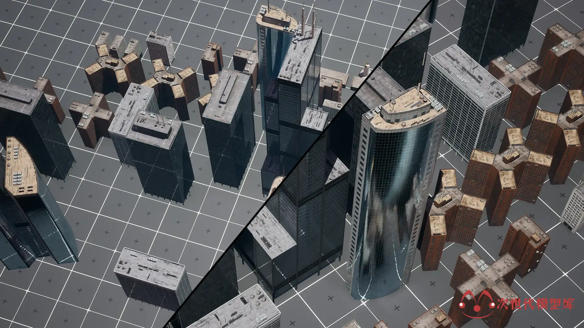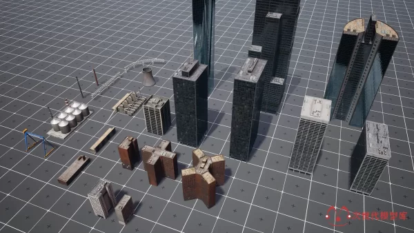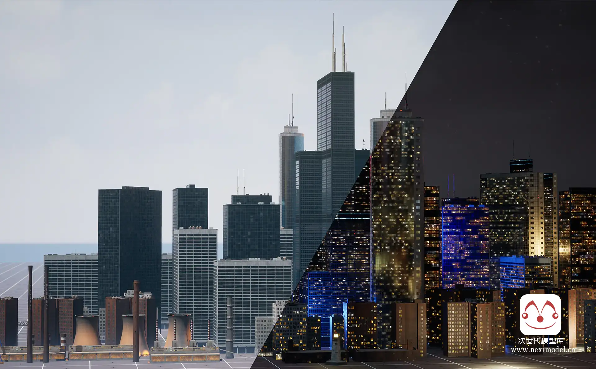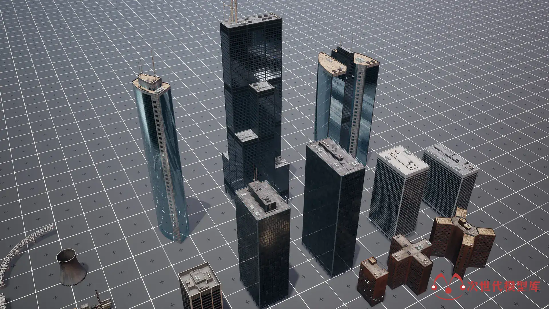 一组逼真的低分辨率远景背景建筑,旨在填充天际线或用于远景背景城市景观。包括办公楼和公寓楼、摩天大楼、发电厂、工厂塔楼等。材料附带发射贴图,用于夜间拍摄带有照明的窗户的照片。