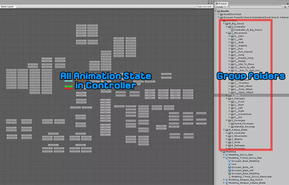 - 位移系统:166种原地微调+145位移动画(RootMotion)