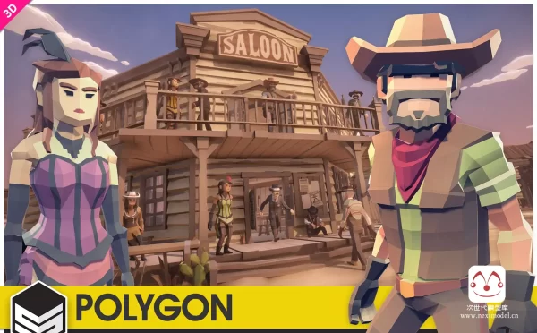 低多边形美国西部城镇模型包