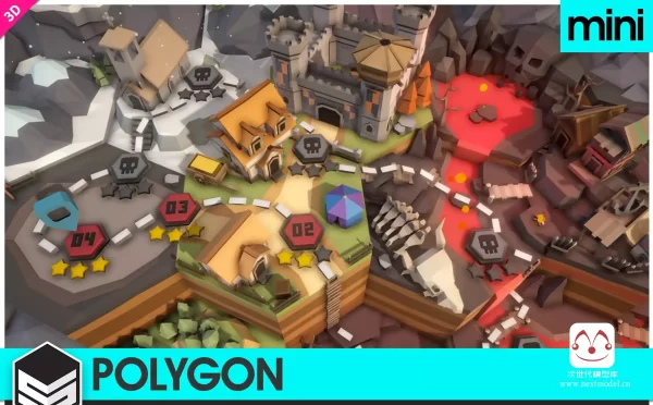 低多边形迷你海岛场景模型包