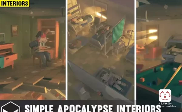 低多边形卡通风格的废弃城市室内场景包