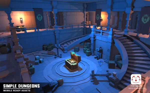 低多边形简单地牢内部场景模型包