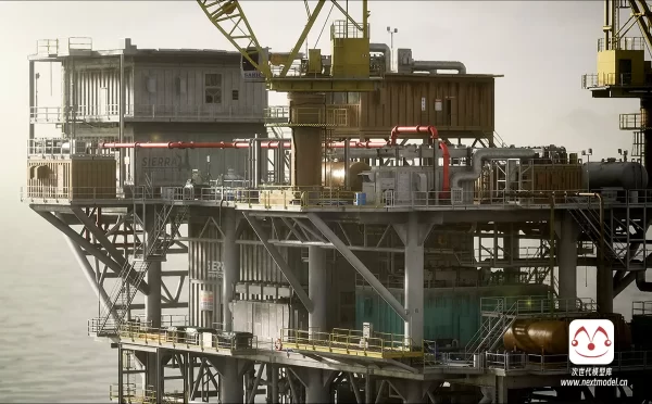 AAA级模块化科幻海上石油钻井平台环境场景模型