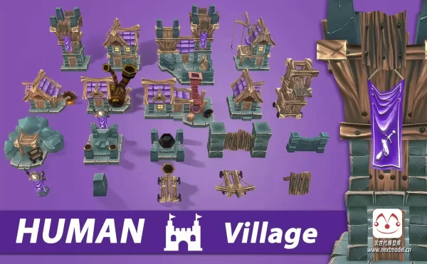 LowPoly奇幻游戏精灵王国场景角色道具模型