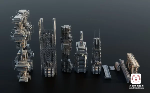 幻想与科幻融合风格城堡建筑组件