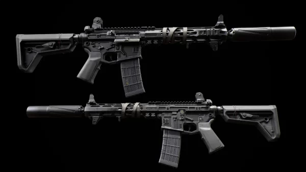 详解AR-15 SLR模型制作全过程,包括构思目标、参考资料收集、3D建模草模、高低模多边形制作、UV展开、几何体细节精修、基于PBR管线的纹理烘焙和上色等核心环节,最后探讨合理设置灯光、摄像机和渲染效果。