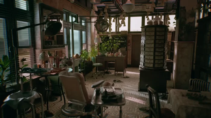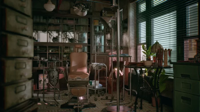 该场景还原了《疾速追杀3:全面开战》中阴暗医生的办公室——约翰·威克在此被缝合伤口,电影开头即遭流放。Han的作品中充满了引人注目的细节,这些细节被一丝不苟地从原片搬移到了三维艺术领域。