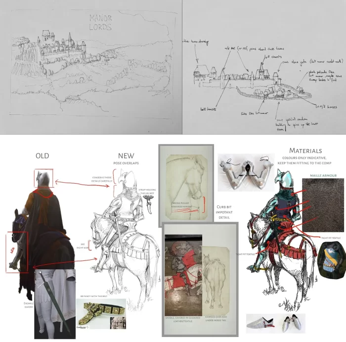 “我的朋友Greg[Slavic Magic的创始人Styczeń]请我重新制作几年前为他的游戏《Manor Lords》所做的艺术图——他希望反映出游戏的变化和发展,以便更好地向玩家展示,”他说。“现在游戏设定在15世纪的法兰克尼亚(德国),力求尽可能地符合历史准确性。”