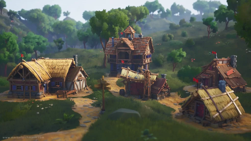 作为对90年代末经典2D城市建设类游戏(如《骑士与商人》和《工人物语3》)的致敬,Martin Teichmann 创作了一个风格化的3D村庄项目。他希望通过现代3D引擎,展现这些经典游戏在当代图形技术下可能呈现的新面貌。