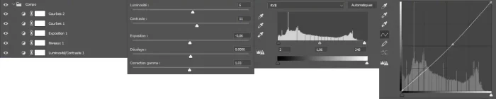 在Photoshop的最终处理阶段,我也力求简化操作,使用一系列诸如对比度、亮度、饱和度等组成的合成图层,并努力实现我想要的最终效果。