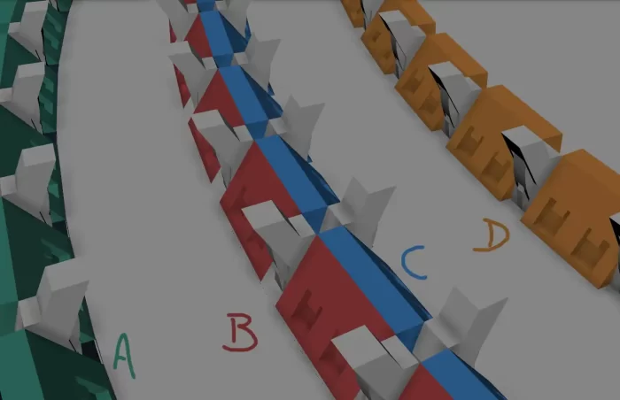 这就意味着连接这些墙体的天花板模块也需要三种版本:一种连接A至B,一种连接C至D,第三种用于直走廊,即A与A之间的连接。同时,与天花板模块配套的所有地板模块也需有所不同。这样一来,工作量比我最初预计的大得多!