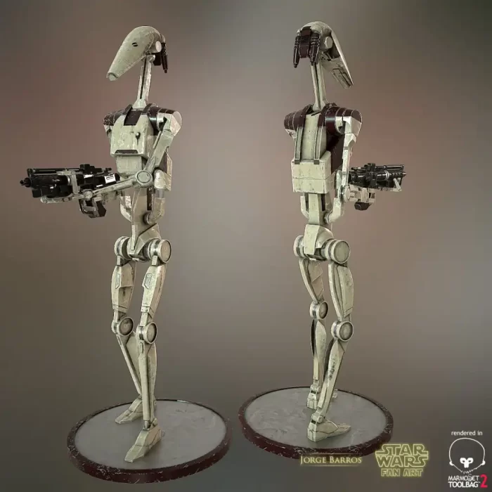 我在2015年开始这个项目,当时计划在当年晚些时候申请进入电子游戏行业的一个职位。由于我追求的是硬表面艺术家的角色,尤其是科幻类游戏方向,而《星球大战》一直是我童年时期的挚爱,所以我选择了制作《星球大战》前传中的战斗机器人作为起点。