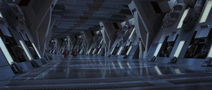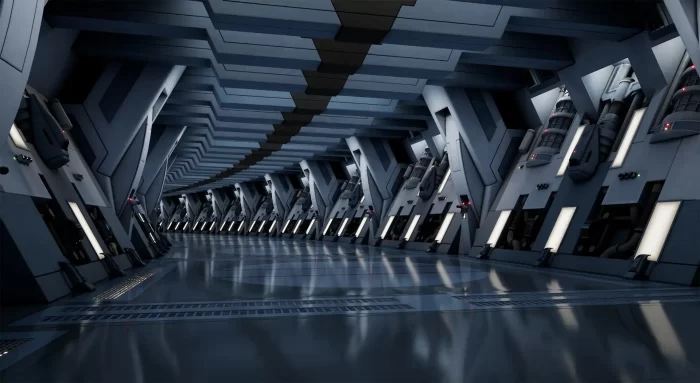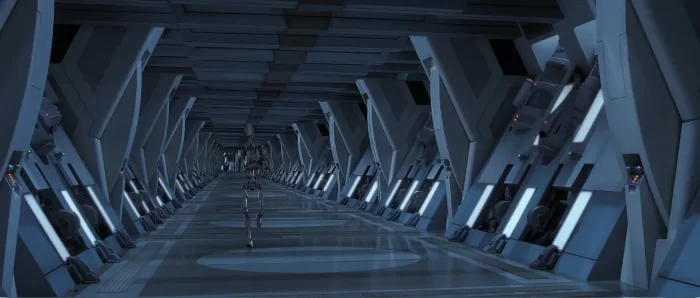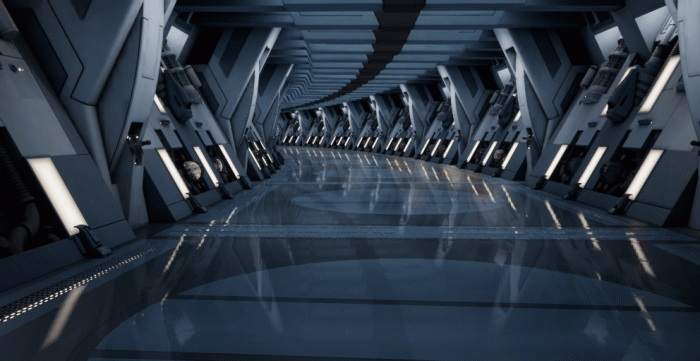 当我完成了战斗机器人的建模后,我认为重现这些机器人首次出现在电影中的环境是自然而然的下一步。我希望借此机会学习虚幻引擎4,因为这对我简历来说是一个很好的加分项。考虑到那个环境在3D中看起来相对简单——只需要重复几个模块就能构建走廊——我以为自己能快速完成。哎呀,我错了……
