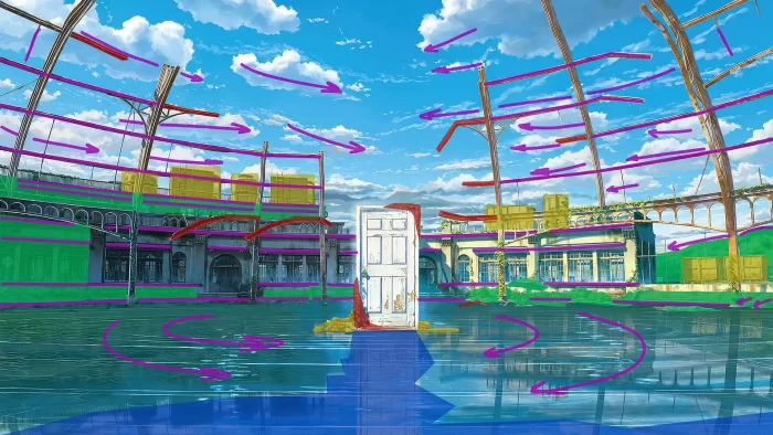 选择合适的概念是定位场景工作的关键阶段之一,可能耗时甚巨。正确的轮廓、构图和指导原则能将看似平淡的概念转化为美轮美奂之作。我很享受基于动画《铃芽之旅》的概念工作,显而易见,这是一个经验丰富的艺术家团队的杰作。