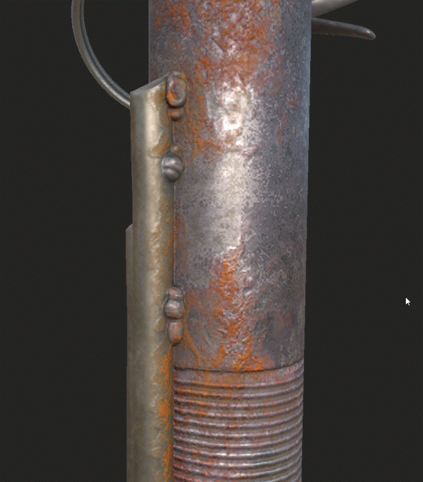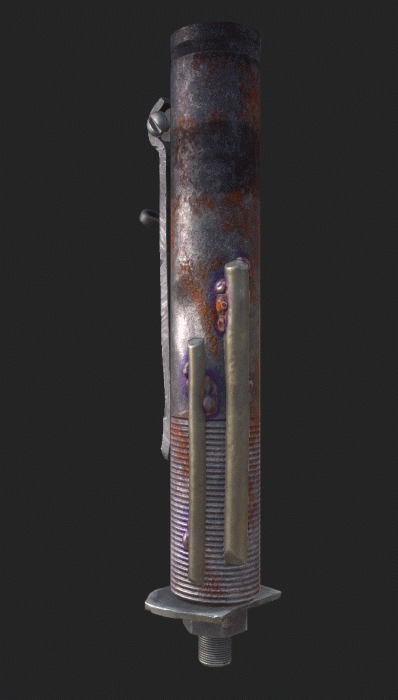 我的废土风手雷资产是基于一位名叫朱莉娅·芝加罗的艺术家的概念而制作的。