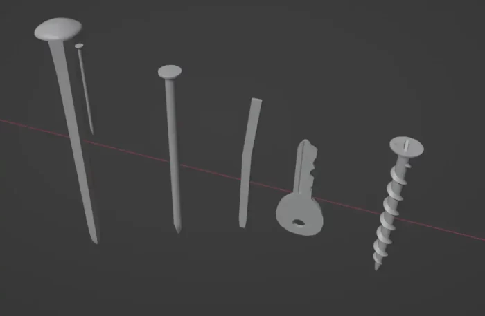 因为这是一个个人项目,所以我没有花太多时间在低模制作上。对于钉子,我直接做了一次decimation获得低模。其他部分是在Blender里从源文件制作的。
