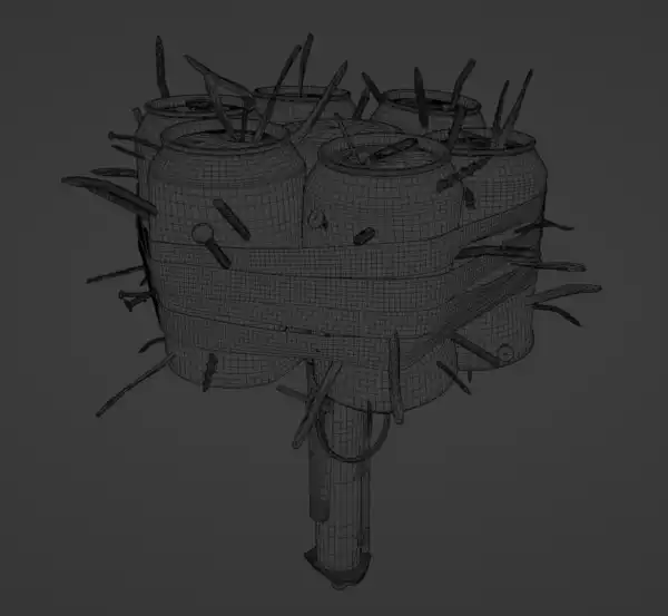 草模非常简单。我直接开始制作高模的易拉罐、手柄(管道)和一些钉子来增加戏剧性。