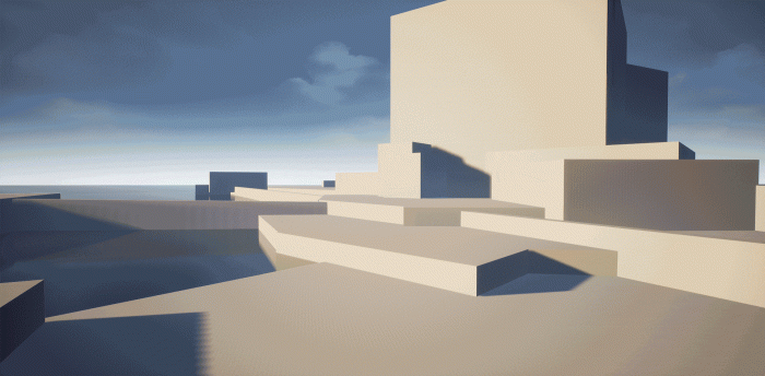 最终,该项目大约耗时一周左右完成。我制作了一段简短的GIF动画,展示了从最简单的灰色立方体到眼前这个活力四溢的世界的演变过程。我的目标是创造出一个既能让人信服又充满奇幻色彩的场景,一个我愿意在游戏中探索的世界。