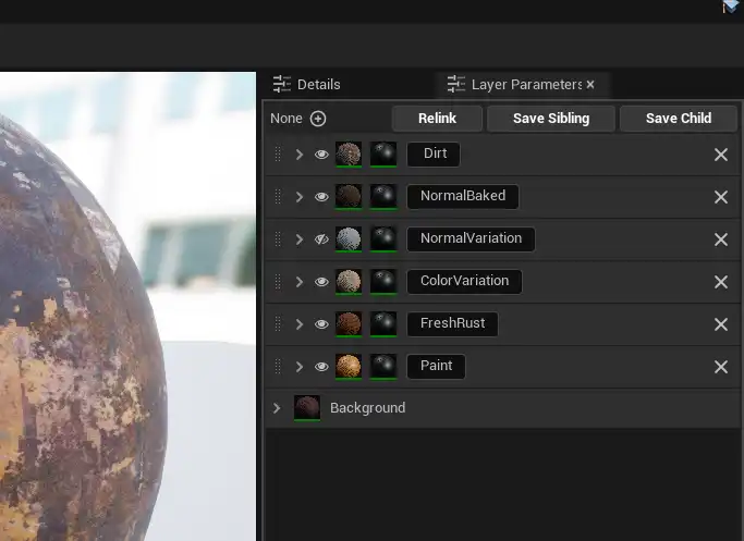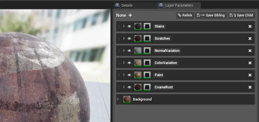 材质层并非普通的材质,它们是以一种非常特殊的方式创建的,并且是一种不同类型的资源(你不能直接将它们应用在网格上,而是需要在一个包含它们的主材质实例内部使用)。尽管如此,它们具备像基础颜色和粗糙度等表面的所有属性。