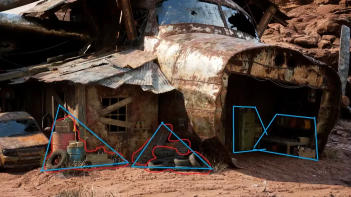 有些很容易适应,比如摄影测量资产,因为即使场景的建模是定制的,纹理也都是摄影测量的。一些建模非常简单的游戏资产,通过一些纹理编辑获得了新的生命。
