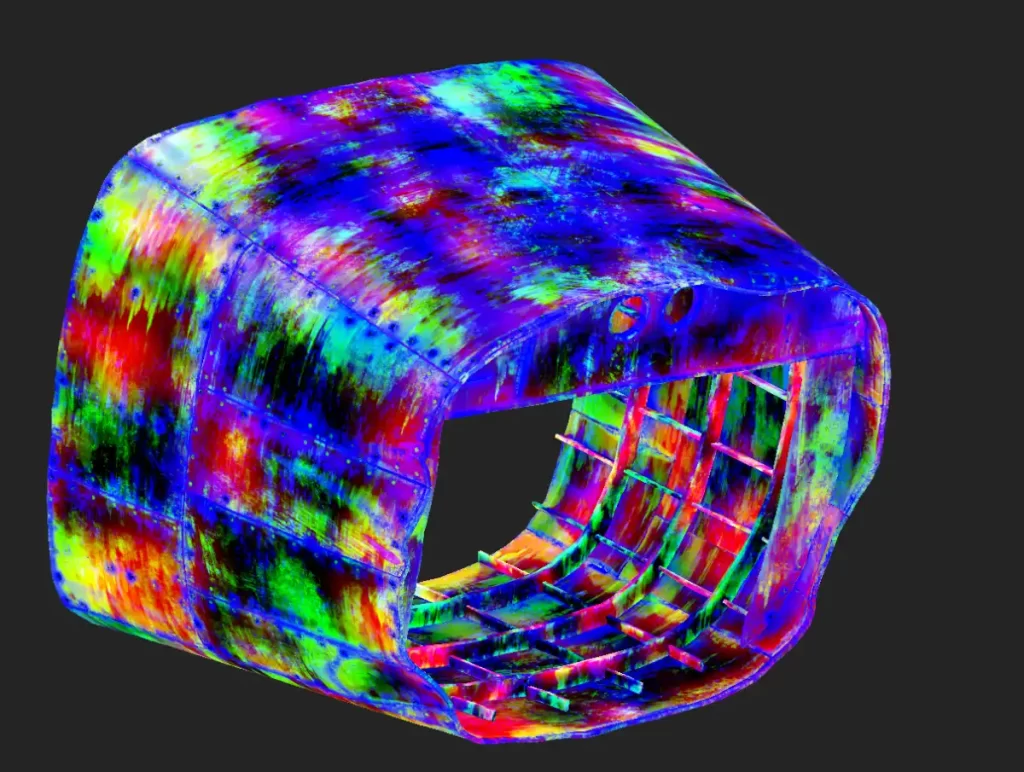 机身材质使用了一个通道用于通用的扭曲金属,一个通道用于污渍,一个通道用于锈迹,最后还有一个用于螺栓和划痕。