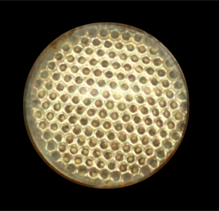 发光纹理的制作非常简单。我拍摄了一张照片——没错,实际上是生活中一个旧按钮,但这并不重要。我从边缘到中间制作了一个亮度渐变,然后添加了颜色、一些污渍和轻微褪色,以增加额外细节。