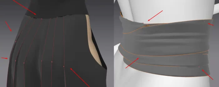 对于袖子部分,我使用了Chaos Cloth进行模拟。由于网上关于如何深入理解和使用该工具的文档和教程较少,我经历了长时间的试错过程。