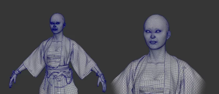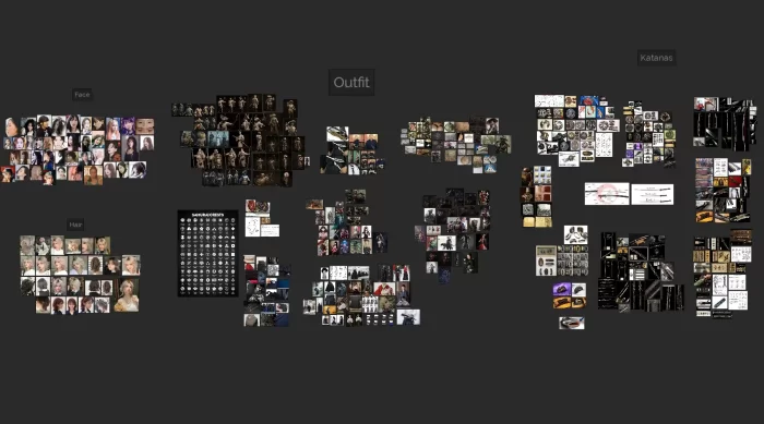 我花了大量时间收集各种参考资料。既然灵感源于《对马岛之魂》,我就从其角色模型中汲取了很多想法。我把这些想法融入到自己的设计中进行再创作。