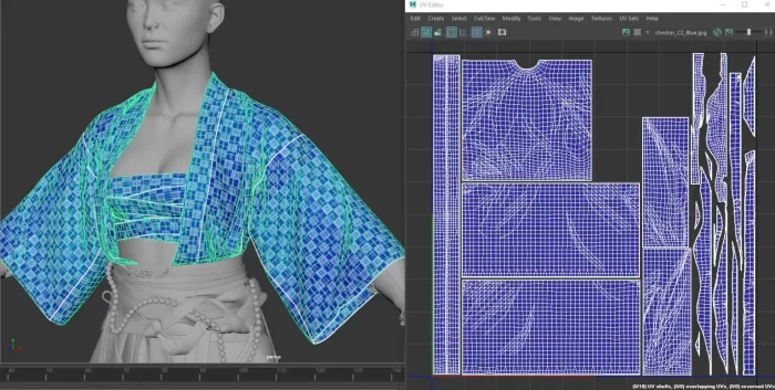 对于UV展开,我喜欢在Maya和RizomUV之间切换工作。对于衣物,我喜欢让UV布局尽可能接近Marvelous Designer生成的结果,这样我可以应用任何可平铺的织物纹理,使其看起来真实。