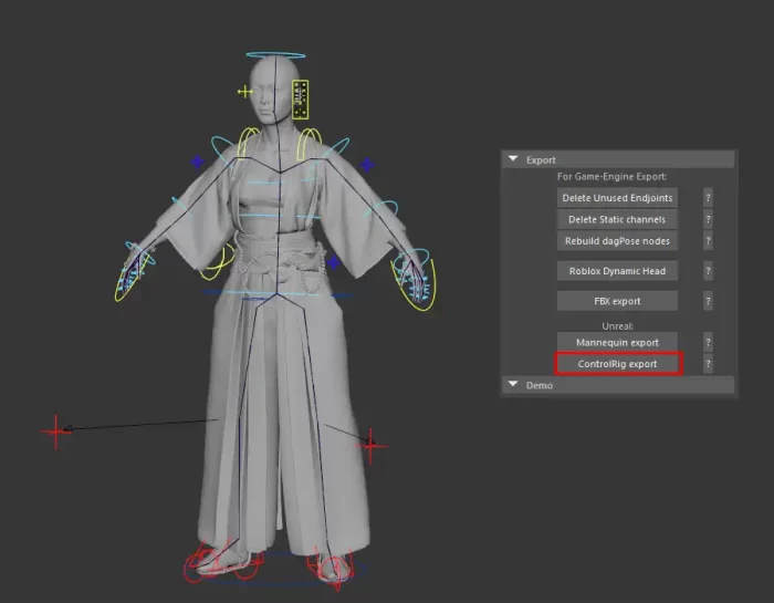 插件还包含一项很棒的功能,即可以导出.py文件,在Unreal Engine内部使用以访问控制骨架特性。在这个项目中,我利用此功能直接在Unreal中快速编辑和生成姿势。