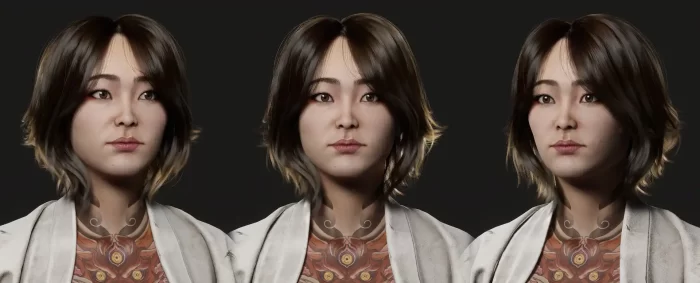 为了在Unreal Engine中使用Alembic头发功能,我选择了使用Xgen。我逐步添加引导线以塑造发型,参考素材至关重要,理解发型中头发的流动方式对此过程帮助很大。起初,发型看上去杂乱无章且毫无形状可言,但一旦应用了第一个团簇(clump)修饰器,发型便开始成形,此时我可以开始进行调整。我不断将梳理好的头发发送到Unreal Engine中,查看其与角色搭配的效果,并据此做出修改。我喜欢的一个步骤是在基本发型完成后,手动添加一些飘散发丝(flyaways),这几乎就像在发型上随心所欲地“绘制”头发一样,我非常享受这个阶段。