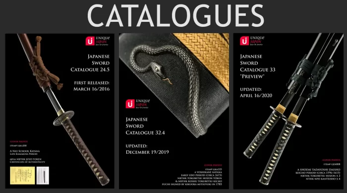 来自Unique Japan的太刀目录尤其有帮助。他们拥有大量的目录,其中每一份都满载着各种风格和时代太刀的高清图片和细节特写。如果你打算制作一把太刀,我强烈推荐查阅这些资源,里面充满了灵感和创意。