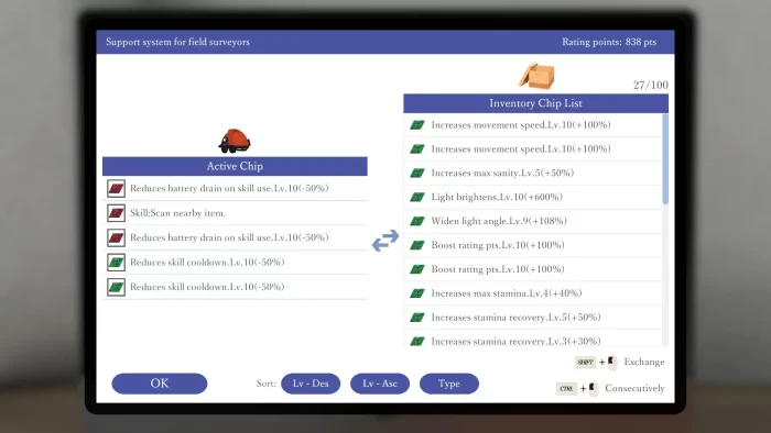 为了在黑暗环境中行动并保持理智,玩家必须佩戴装有照明设备的头盔。携带带有怨念的物品会导致理智值更快地下降,所以要小心!