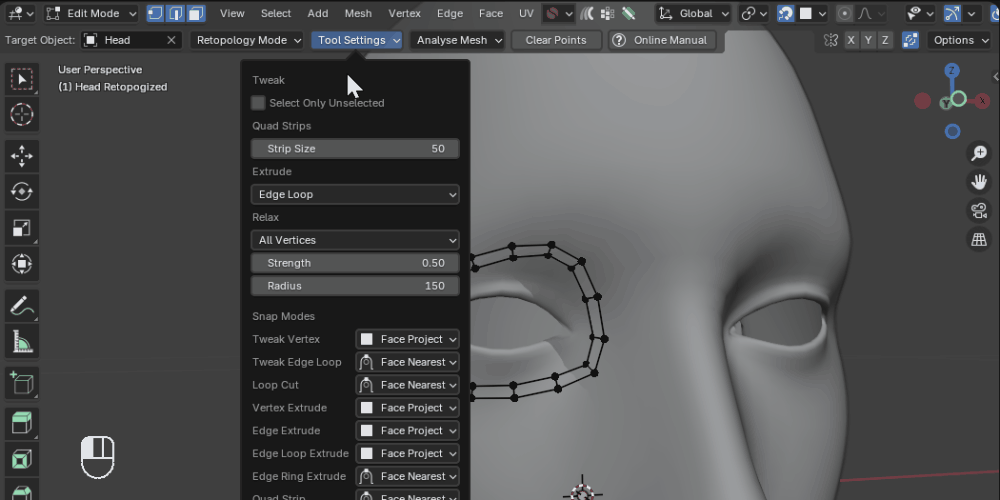 Quad Maker专注于简洁性和速度,在统一的热键驱动工作空间内优先处理基本的重拓扑功能。尽管它可能不像其他重拓扑工具那样功能丰富,但它力求与Blender的原生网格编辑特性无缝集成。