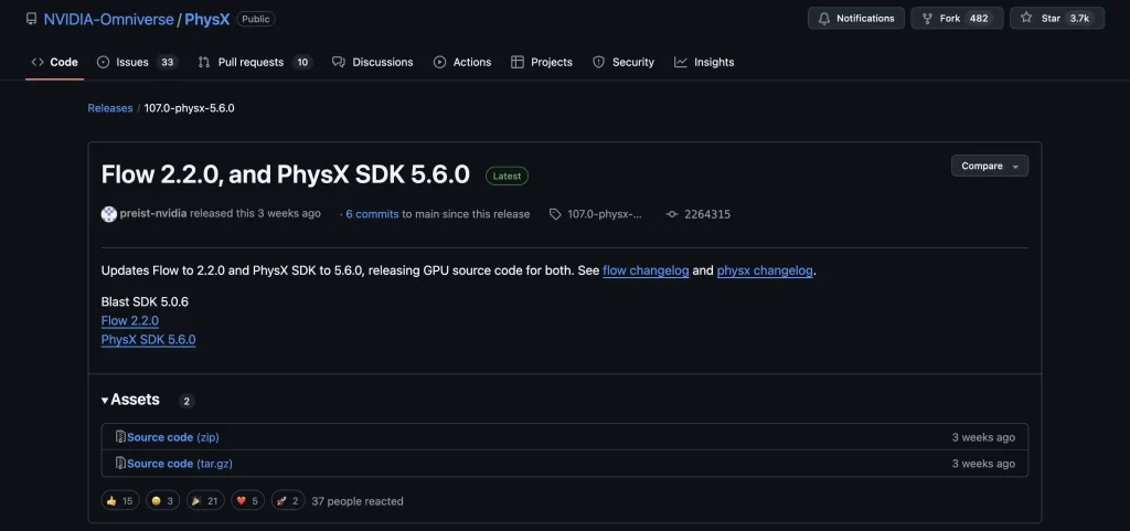 - PhysX SDK 5.0:首次公开所有GPU核心代码(含500+ CUDA内核),覆盖刚体动力学、流体模拟、可变形物体等高级功能。