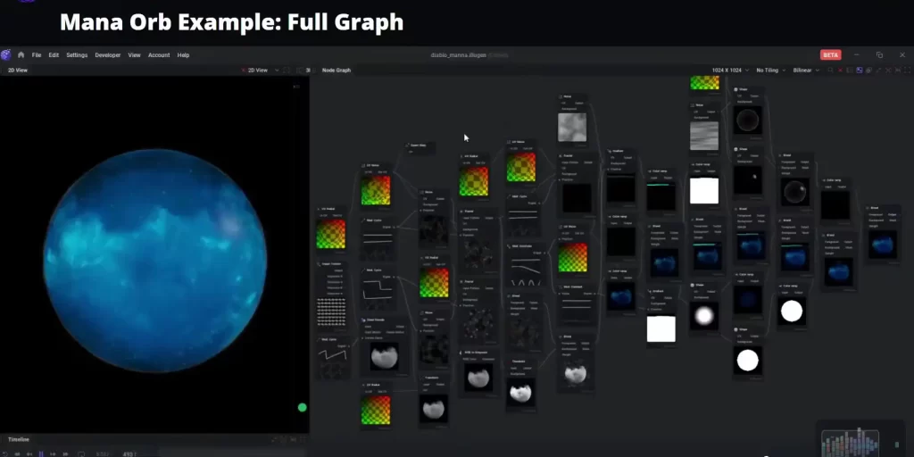 - 通过连接节点图中的节点来创建效果(类似JangaFX其他产品或Adobe Substance 3D工具)