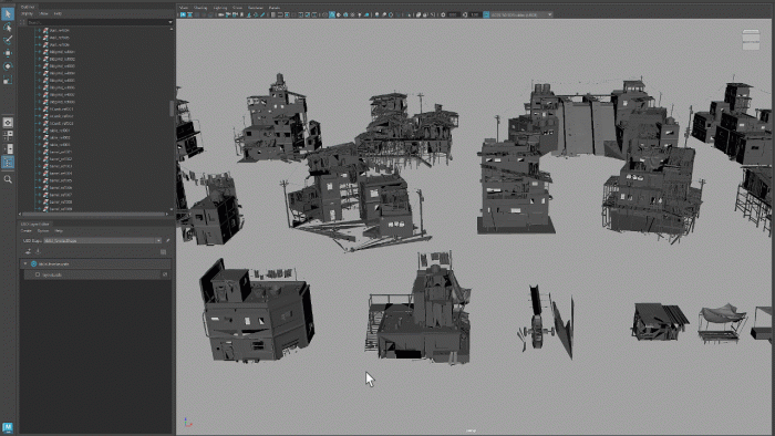 Open USD 的整合进一步加强,得益于一款新插件,它提供了批量加载和卸载多个 prim 的能力,并使用通用操纵器来移动、旋转和缩放 prim。