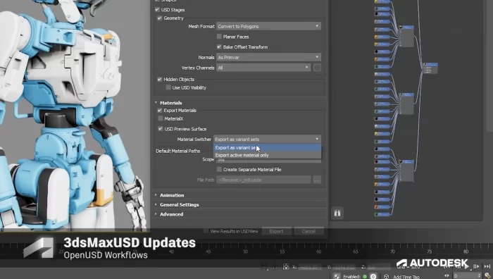 Material Switcher 功能也得到增强,使其在导出 USD 文件时能够使用多/子对象材质: