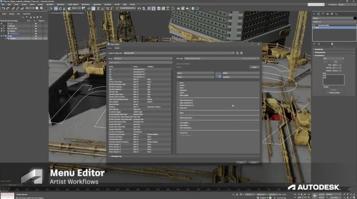 最后,全局搜索功能已实现现代化,提供了丰富的功能。在您键入的同时,会出现一个命令列表,包括显示最近使用的5个项目、带有 ToolClips 的扩展结果、搜索窗口停靠功能等许多其他特性。您还可以使用全新的菜单编辑器来设置自定义工作区,轻松定制 3ds Max 的菜单结构。