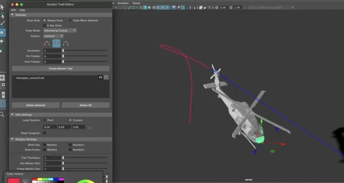 现在,您还可以通过全新的 Motion Trail 编辑器减少鼠标移动和点击次数,所有与运动轨迹相关的操作都集中于此。您可以通过 Animation 菜单集中的 Visualize 菜单访问它,或者直接点击 Animation 搁架上的 Motion Trail 编辑器图标。