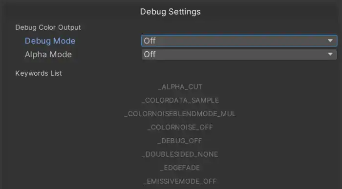 在调试设置中,您还可以找到应用于该材质的活动关键字列表,有助于进一步控制和优化材质表现。