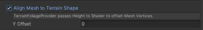 类似于Foliage Renderer的光照着色器中的功能,它会根据提供的地形高度图移动网格的顶点,使植被紧贴地形。Foliage Renderer可以自动分配这些高度图,或者你也可以在材质中手动指定。